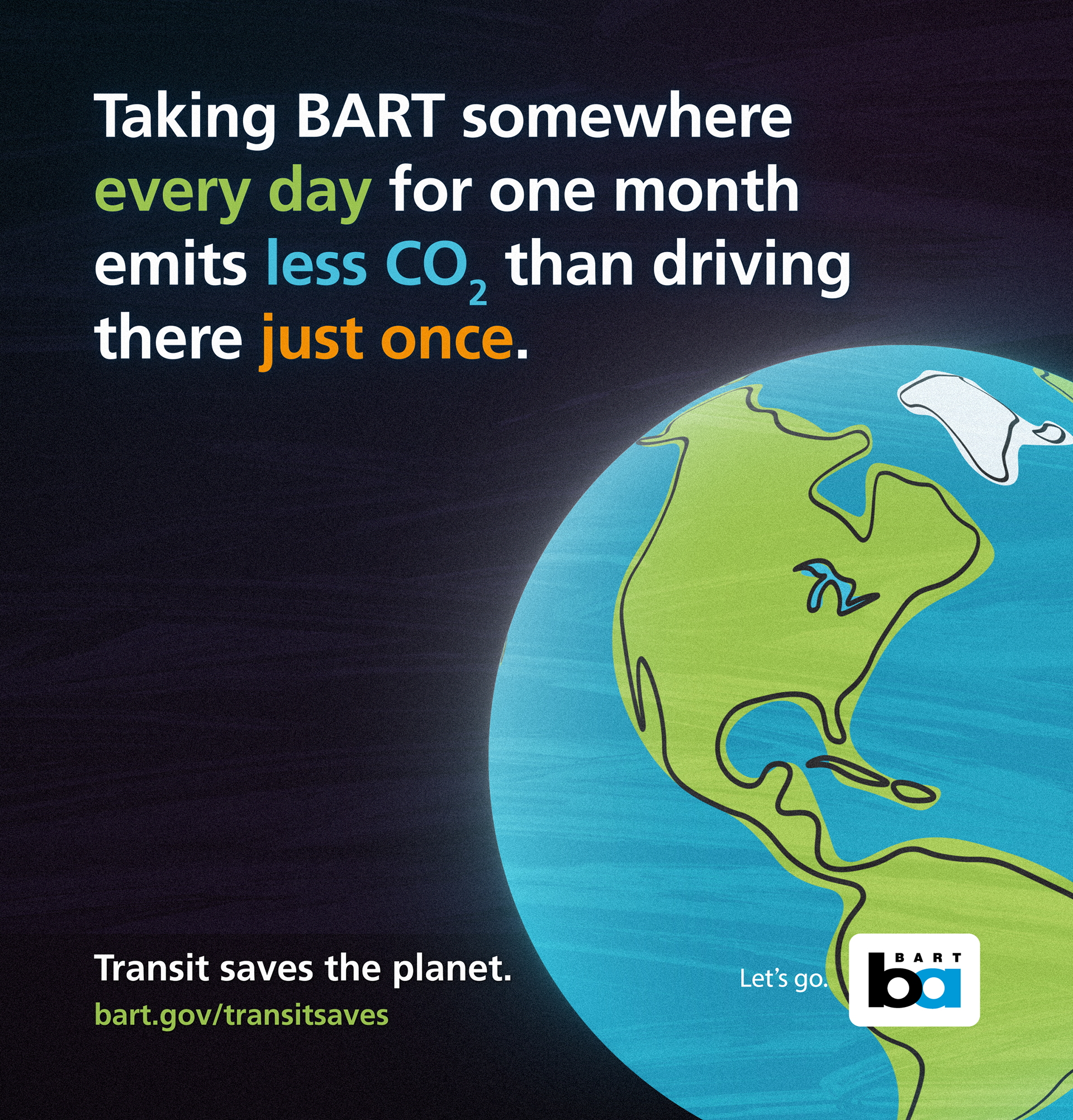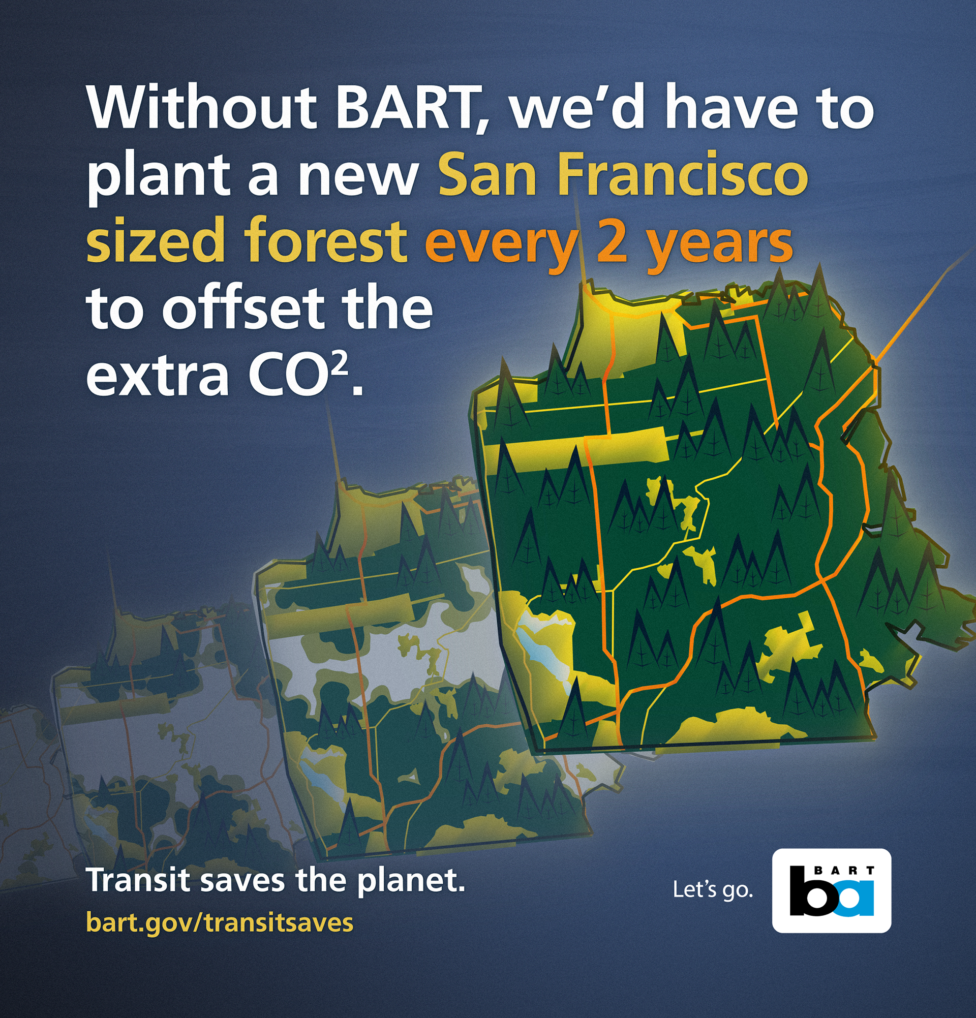 Transit Saves is a multi-year, multi-disciplinary ad campaign designed to turn this data into quick facts that can be easily understood - instead of pounds of CO2 saved, it's trees required to offset. Instead of passenger-miles taken off the road, it's the length of the traffic jam that would be created.