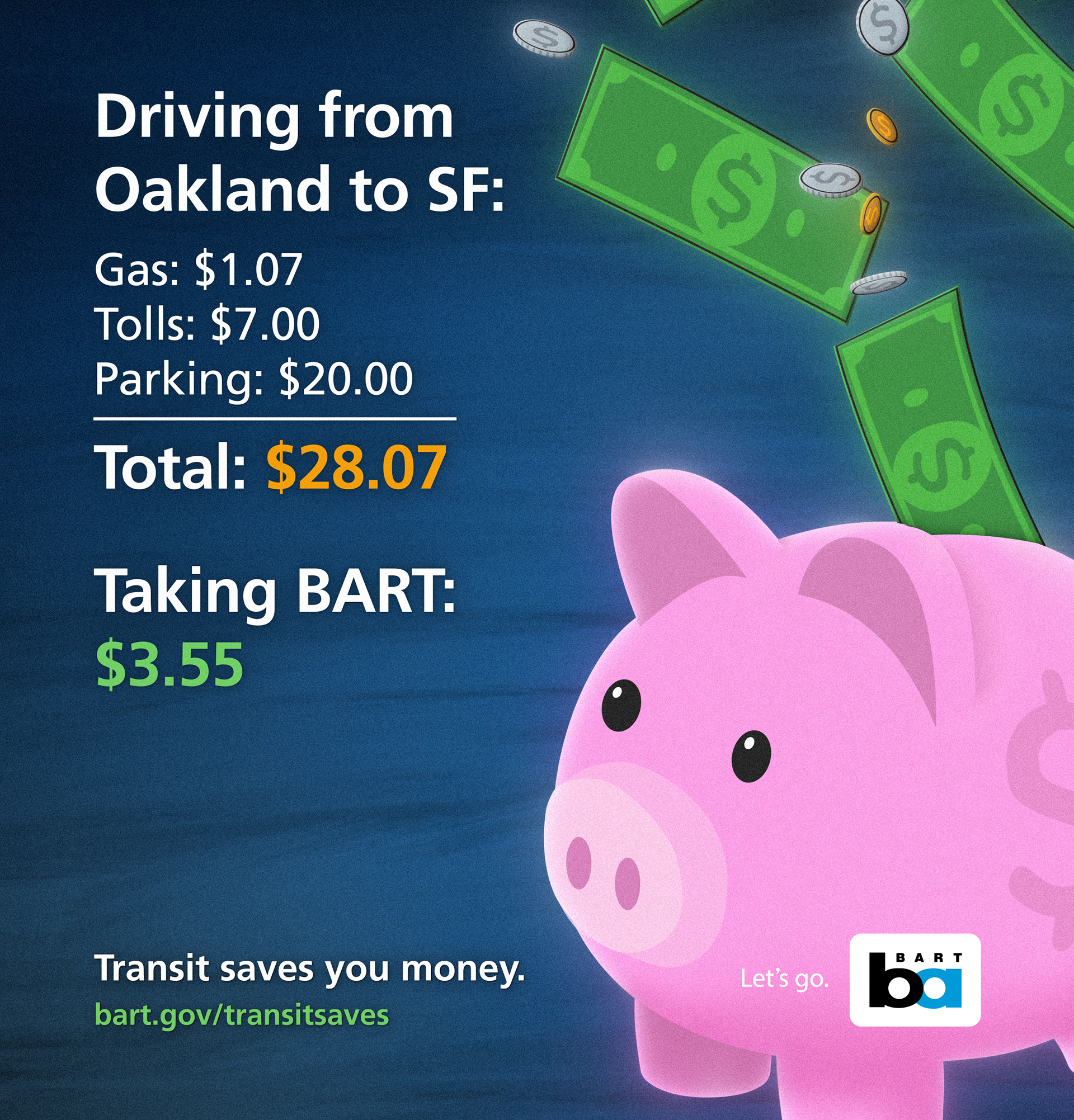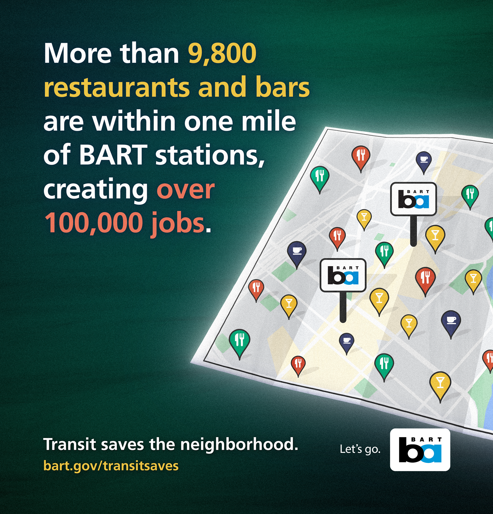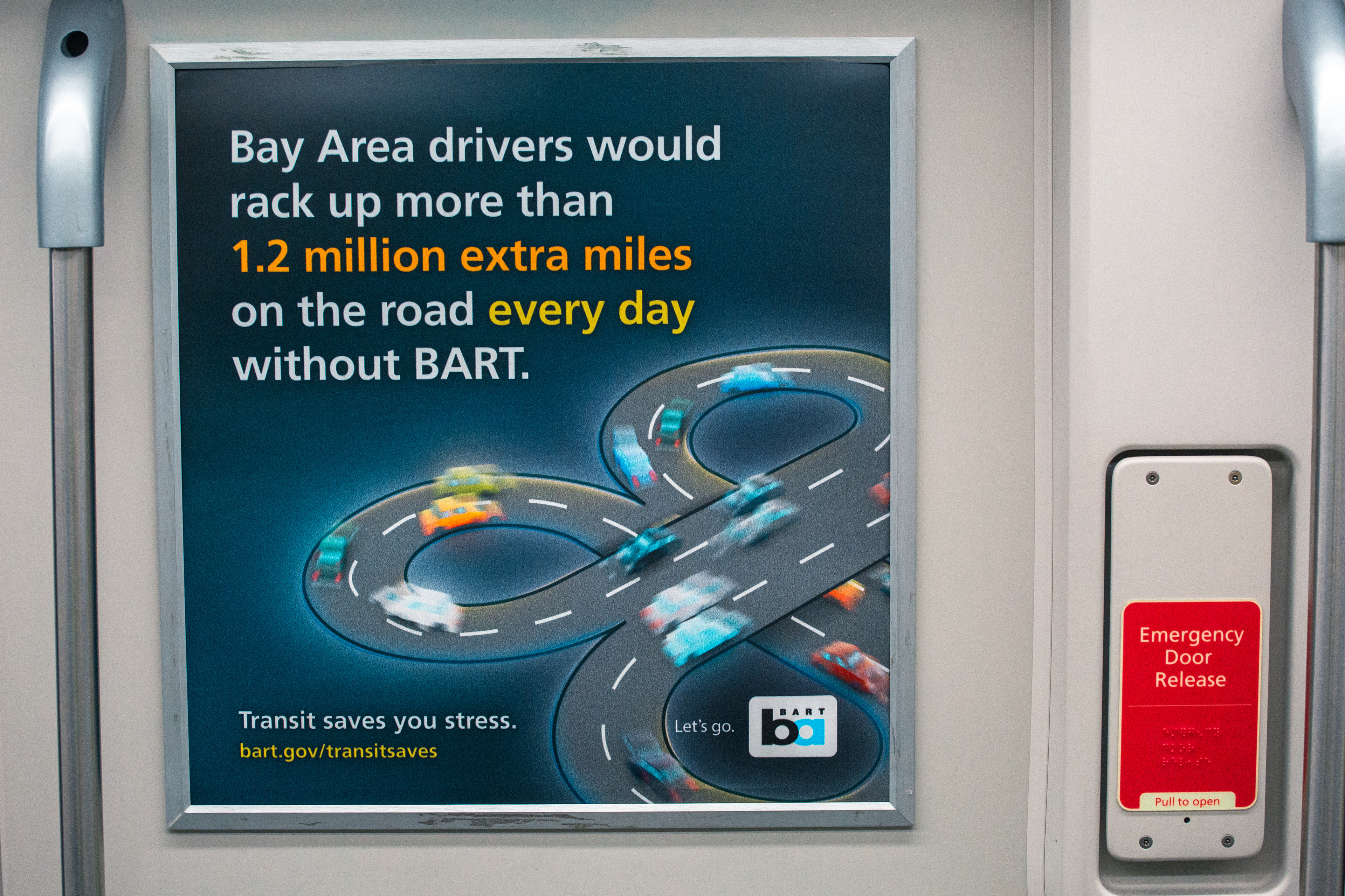 These ads were so successful inside the BART system, the Transit Saves campaign was given the go-ahead to go beyond the traditional bounds of BART, being featured in billboards by Highway 880 in Berkeley and in a large-scale online ad buy.